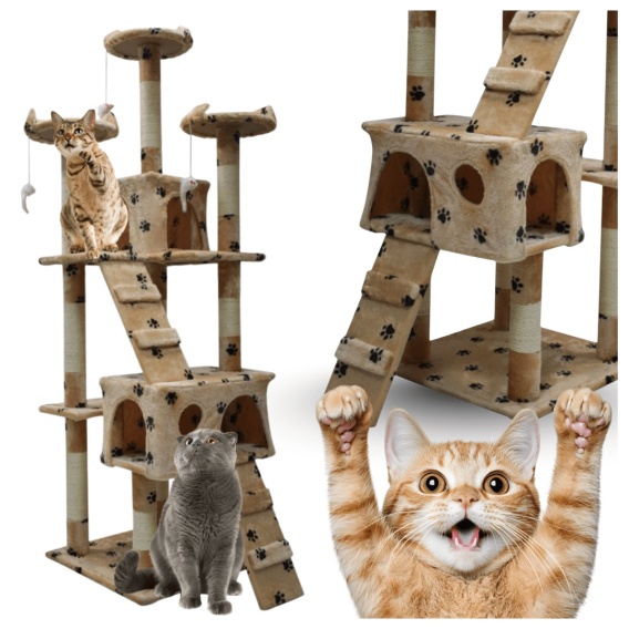 Podaruj swojemu futrzanemu przyjacielowi idealne miejsce, które zaspokoi jego naturalne instynkty i zapewni komfortowy azyl. Ten przestronny drapak dla kota beżowy w łapki o imponującej wysokości 170 cm to kompleksowe centrum aktywności i relaksu. Został starannie zaprojektowany, aby sprostać potrzebom zarówno pełnych energii kociąt, jak i spokojniejszych, dorosłych kotów. Solidna konstrukcja i przemyślane detale sprawiają, że Twój pupil zyska tu idealne środowisko do zabawy, drapania i błogiego odpoczynku.