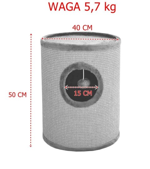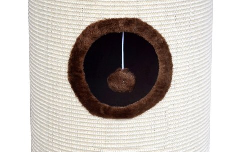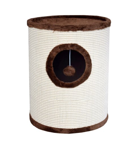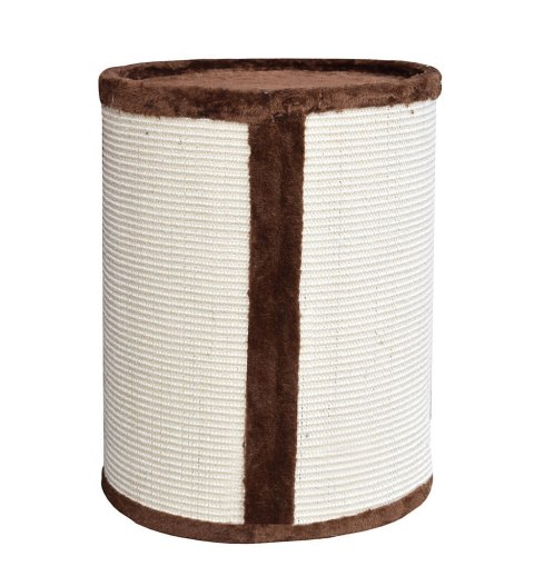 Drapak w kształcie tuby jest pokryty w większości sizalem, co pomaga w oduczeniu kota drapania mebli.