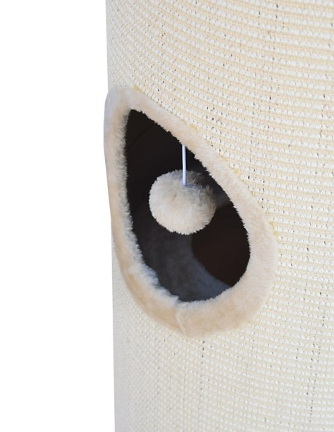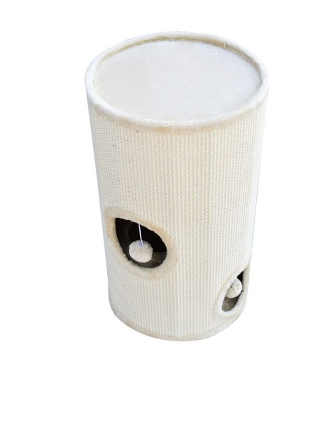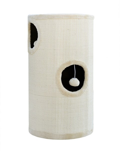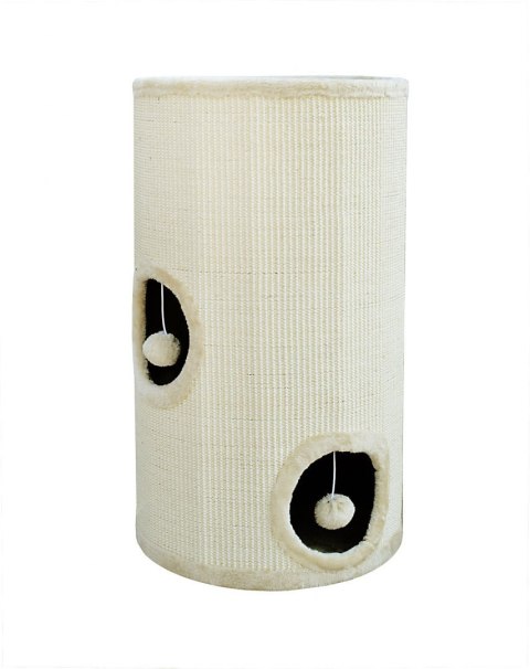 Drapak w kształcie tuby jest pokryty w większości sizalem, co pomaga w oduczeniu kota drapania mebli.