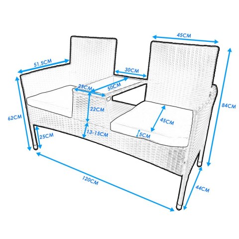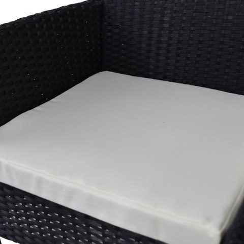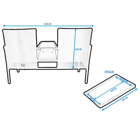 - Materiał: stalowa rama (powlekana), technorattan, tapicerka z poliestru, plastikowe nóżki