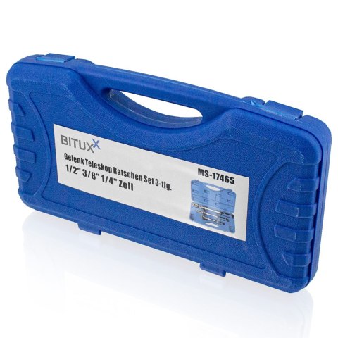 ✅ Wszechstronność: Zestaw 3 grzechotek o uchwytach kwadratowych (1/2", 3/8", 1/4") regulowanych w 10 pozycjach, idealnych do pracy w trudno dostępnych miejscach.