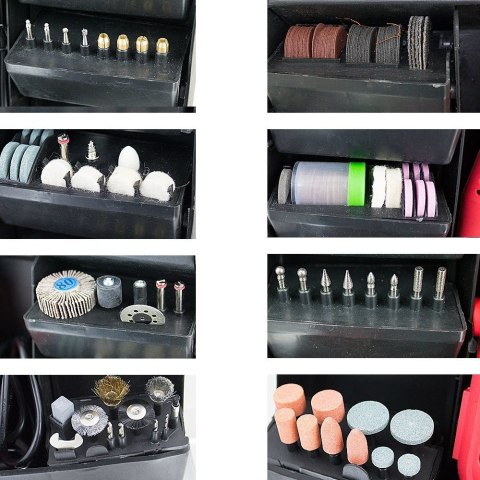 Dzięki 320-elementowemu zestawowi akcesoriów, z łatwością wykonasz takie czynności jak wiercenie, szlifowanie, polerowanie czy frezowanie.