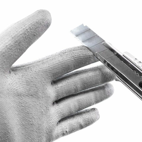 Dzięki wzmocnionej powłoce PU rękawiczki zapewniają bardzo dokładny chwyt, jednocześnie zapobiegając przenikaniu się ciał stałych i drobnoustrojów, a dodatkowo chronią przed przecięciem.