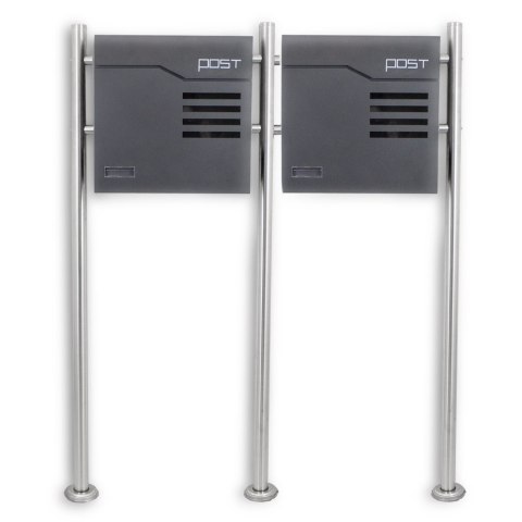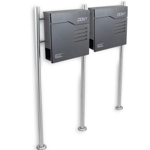 Skrzynka na Listy Gazety Podwójna na Stojaku Grafitowa z Okienkami