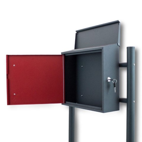 - Design letterbox metal, ciemnoszary / czerwony lakierowany proszkowo