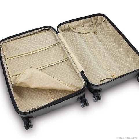 Jest pakowana indywidualnie w folię i dostarczona zapakowana w karton. Nasze walizki są formostabilne dzięki elastycznej, twardej obudowie z tworzywa ABS. Dzięki systemowi 360º 4 podwójne kółka pracują cicho i są komfortowe w użyciu. Dzięki dodatkowym kieszeniom i specjalnym rozszerzeniom objętość walizek zwiększa się o 25%. Zintegrowany zamek szyfrowy zapewnia ochronę przed nieautoryzowanym dostępem. Walizki zostały wyposażone w podwójne uchwyty , dlatego można je również transportować bocznie. Posiadają również ergonomiczny uchwyt teleskopowy z regulacją wysokości.