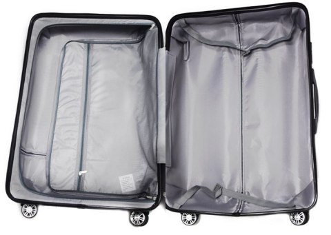 - Wnętrze walizki jest wielokomorowe i wyposażone w pasy stabilizujące