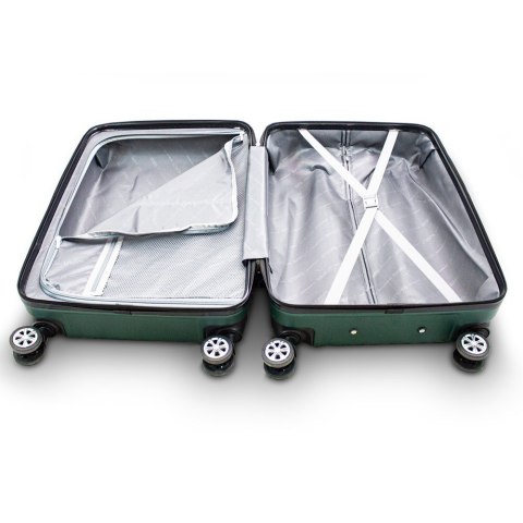W środku walizki mają komorę na zamek oraz komorę z pasami, co pomaga utrzymać porządek i ułatwia pakowanie.