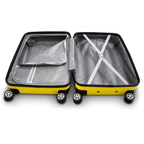 W środku walizki mają komorę na zamek oraz komorę z pasami, co pomaga utrzymać porządek i ułatwia pakowanie.