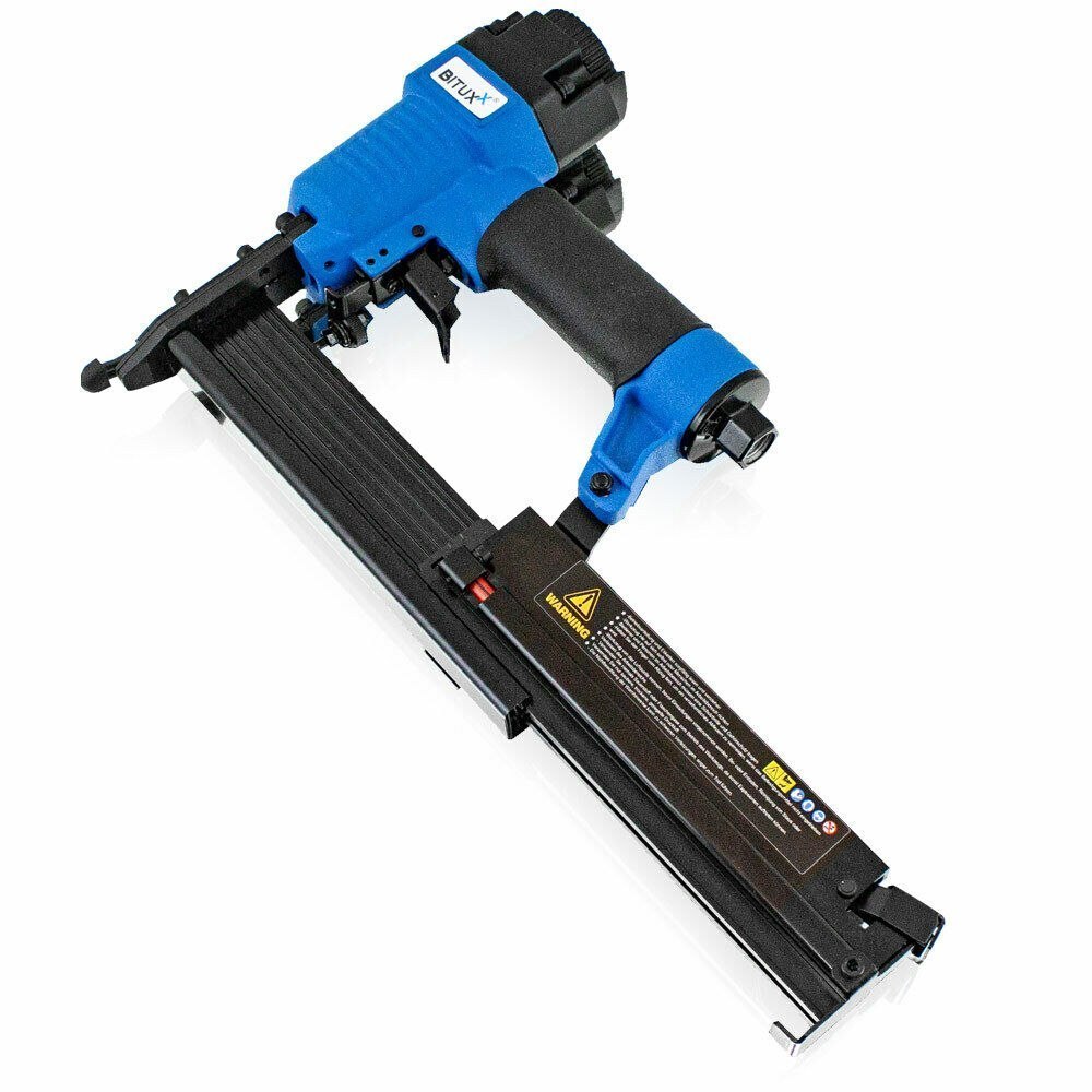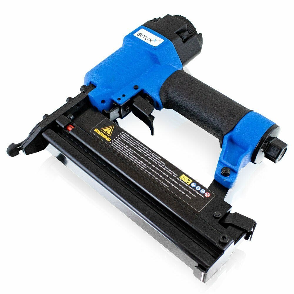 Gwoździarka pneumatyczna Bituxx jest idealna dla każdego domu i złotej rączki!Za pomocą gwoździarki możesz szybko i profesjonalnie przymocować deski, szalunki, ogrodzenia, listwy itp.Nadaje się do gwoździ od 10 do 50 mm i zszywek od 13 do 40 mm i może pomieścić maksymalnie 100 gwoździ / zszywek w magazynie.Gwoździarkę z łatwością podłącza się pod system sprężonego powietrzna, a dzięki elementowi stykowemu jeszcze łatwiej i bardziej precyzyjnie można wbijać gwoździe i zszywki. Dzięki gumowanemu uchwytowi pistolet jest bezpieczny i ergonomiczny w dłoni.