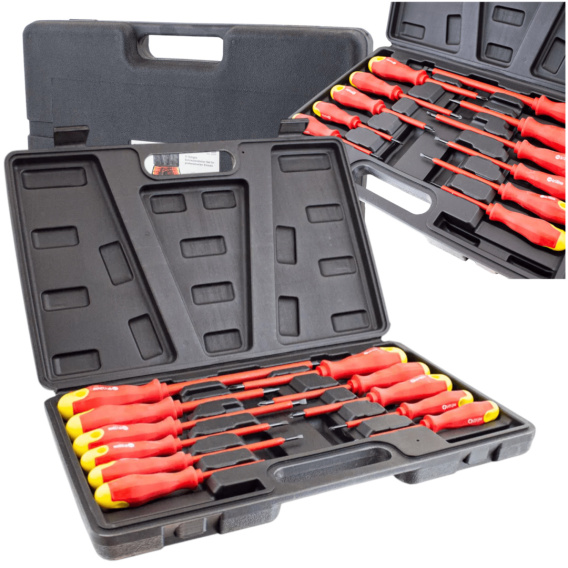 🔧 11-Częściowy Zestaw Wkrętaków – Izolowane Płaskie i Krzyżakowe Kompletny zestaw 11 izolowanych wkrętaków płaskich i krzyżakowych z magnetycznymi końcówkami, idealny dla majsterkowiczów. Wygodne uchwyty i praktyczne etui w zestawie.